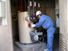 各種ボイラー設備 ●各種ボイラー設備 空調設備・生産システムの原動力とも言えるのがボイラー設備です。当社ではボイラーの創り出すエネルギーを有効に活用する各周辺設備も共に、設計・施工を承っております。 真空式温水ボイラー設備入れ替え中 ボイラーの試運転中 セクショナルボイラー